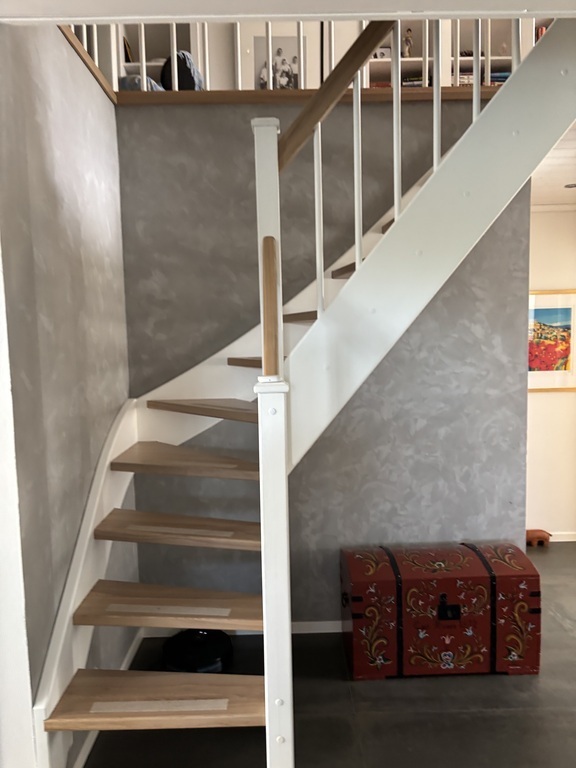 I stue etagen i vores ejendom ligger en Lægeklinik. På 1. etage ligger vores lejlighed. På etagen over, altså 2. etage bor en italiensk - engelsk familie. De har 3 hjemmeboende børn + en hund.