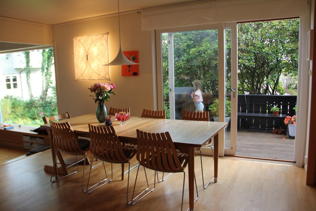Our house is a modernistic house from the '60s, and we are renovating little by little, while trying to keep the original qualities. The area where we live is famous for many villas by early 20th century modern architects, and the area is actually called Paradis. The house is situated 400 m from the city light rail that will take you to Bergen centre or the airport in 20 minutes, and directly by a bus stop. The nearest centre is 5 min by light rail (or 9 min by bike) away.