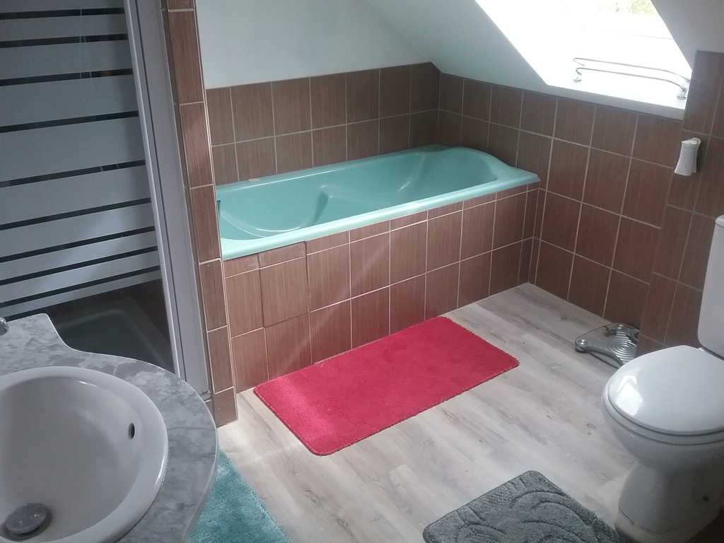 Nous pouvons accueillir une personnes en fauteuil roulant, les WC et Salle de bains ont des portes de grande largeur et la salle de bain du bas est équipée d'une douche italienne très large, possibilité d'envoyer des photos. La personne peux aussi dormir en bas. Les pièces du bas sont très vastes et sont très accessibles.