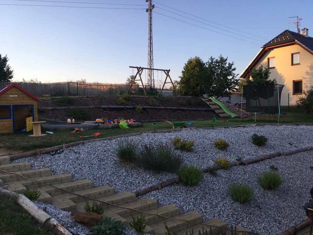 A charming new house10 minutes from Pilsen, perfect for families and relaxation! The spacious garden is a true oasis, featuring a trampoline, swimming pool, mud kitchen and sandpit. Adults will love the multiple resting spots, a patio with a BBQ corner.