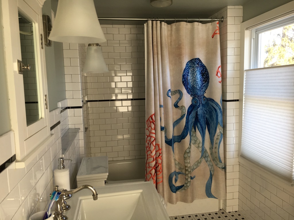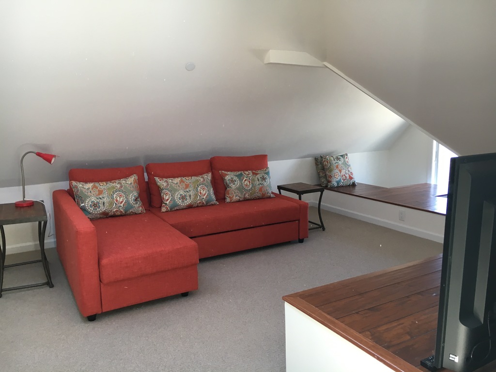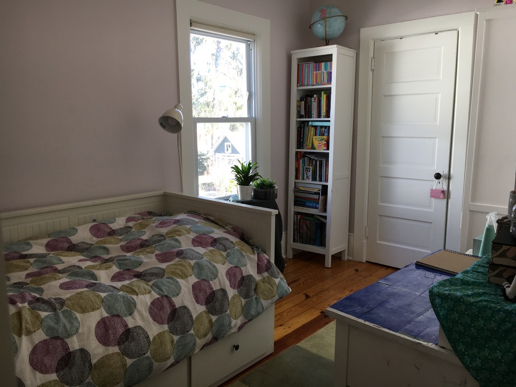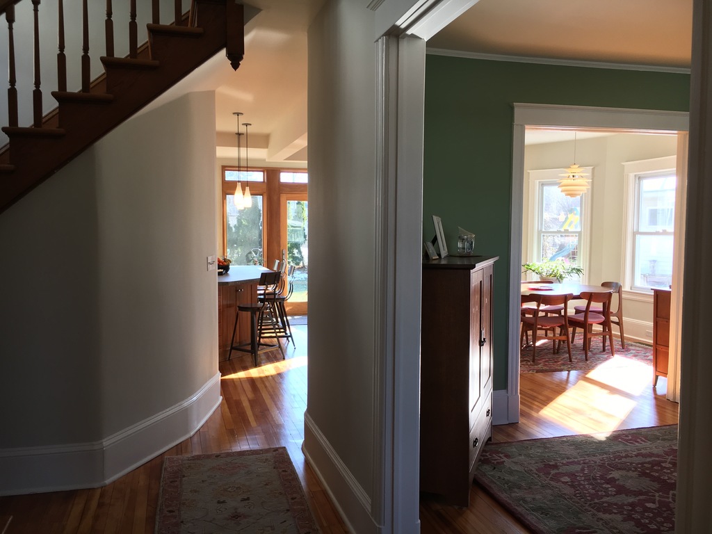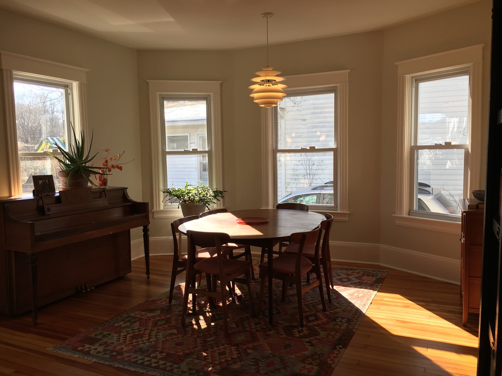 Our house has four bedrooms, as well as an attic with a sofa/queen-size bed. There is a large kitchen (with two ovens, a microwave, dishwasher, and stove), dining room, and a living room (with a television). The house has central air conditioning and Wifi throughout (there is a separate a/c unit for the attic). We have two full bathrooms upstairs and a half-bath downstairs. There is also a washing machine and dryer in the basement. There is also a piano in the dining room, books in many rooms, and a record player and LPs in the attic (along with another television set).