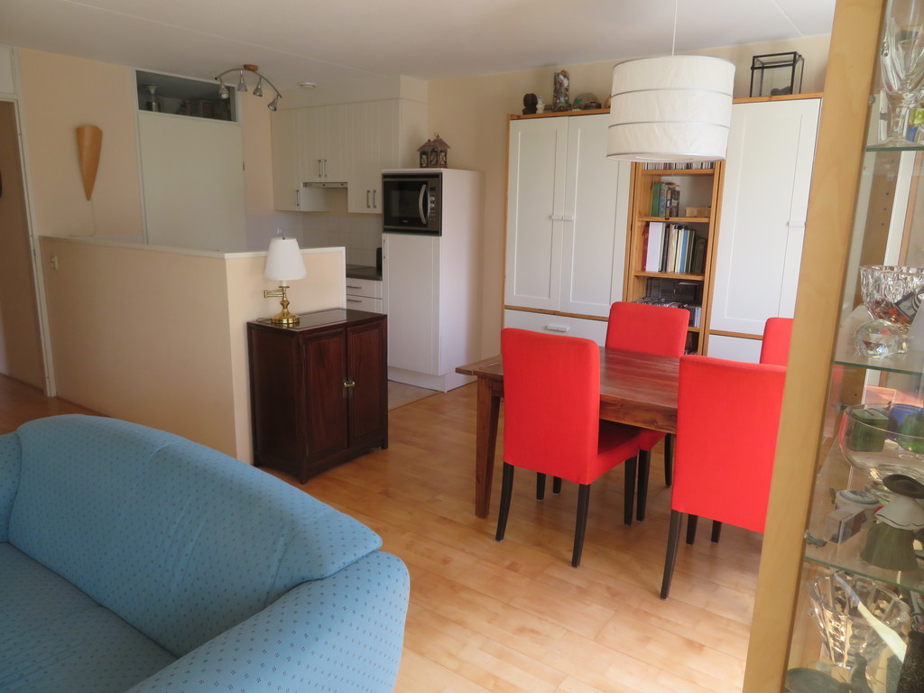 15 minute bike ride or 7 minutes on the train/metro to the famous Amsterdam canal and museum area in the city centre. We have a modern flat with lift and garage near the Amstel train station. The living/dining room with enclosed balcony is on the west side with a view of the Amstel River. Our shopping street, Rijnstraat, is a 5 minute walk away. This is a great location for Amsterdam or as a basis to visit other places by train or car. Bike south and you are soon outside Amsterdam with the beautiful windmills and pasturelands.