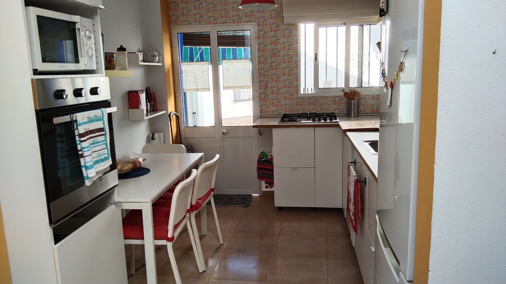 La casa se encuentra ubicada en una calle tranquila dentro del núcleo urbano. La casa está reformada y consta de 2 plantas. La planta baja tiene salón (con aire acondicionado), patio interior, dormitorio, trastero, cocina, baño completo y patio exterior. La planta de arriba tiene dormitorio, aseo y patio exterior. La casa es cómoda, muy luminosa y fresca.