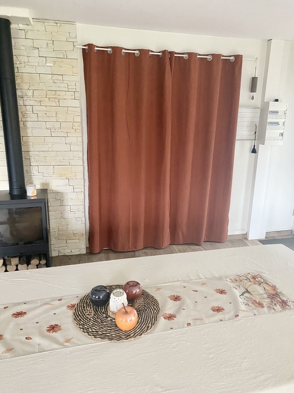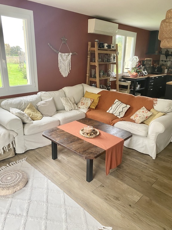 Au rez-de-chaussée, vous trouverez un grand séjour avec un poêle à bois : salon, salle à mangé et cuisine équipée. Une chambre parental avec dressing et salle de bain (douche et baignoire) puis une chambre d'enfant avec un lit mezzanine bas et un matelas en dessous.