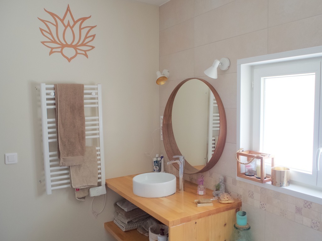 A l’étage, il y a les trois chambres de nos grands enfants, chacune possède un un lit double (140x190). Il y a une petite salle de bain avec une vasque et une douche, puis un toilette séparé.
