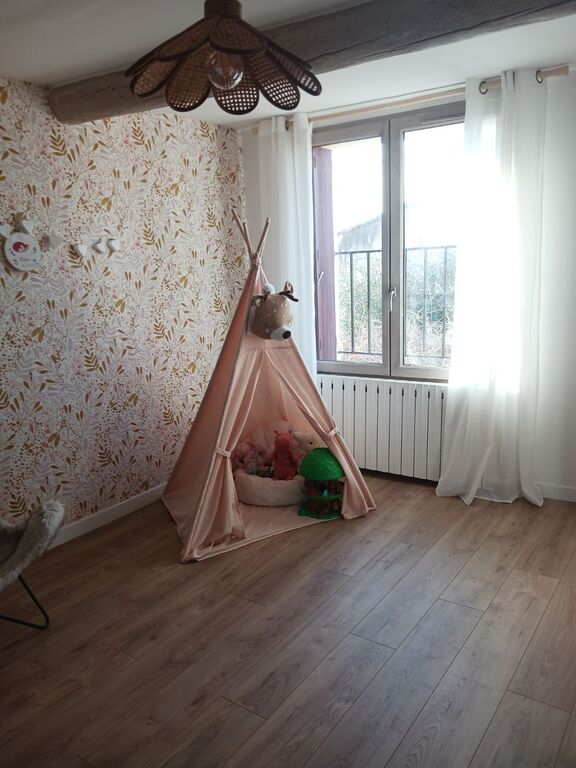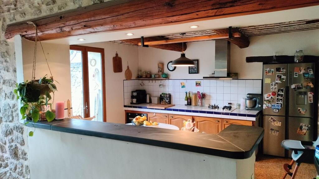 La maison est ancienne mais adaptée à toutes les commodités nécessaires. C'est une maison de village avec un petit jardin, une terrasse et un garage. Le lieu est très calme et les voisins très discrets.