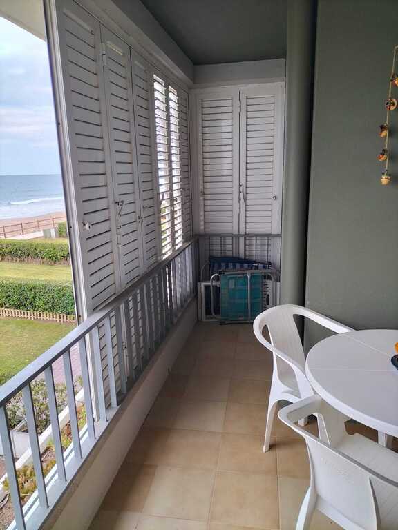 Se trata de un conjunto de 60 apartamentos, todos con vistas al mar y garaje, con un amplio espacio comunitario con piscina y campo de tenis. Entre el complejo y la playa no hay ninguna calle. El apartamento tiene terrazas al lado mar y al lado piscina. Hay un portero que vive allí y se encarga del mantenimiento y del control del conjunto. El apartamento es especialmente indicado para niños.