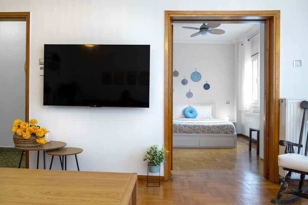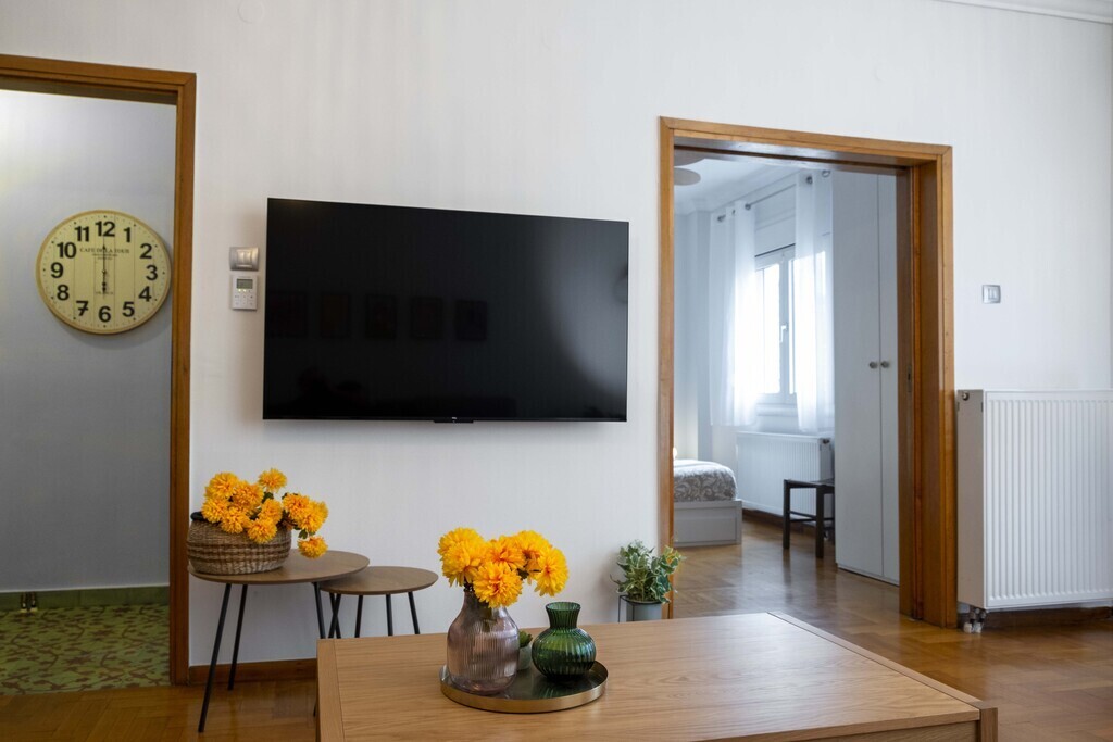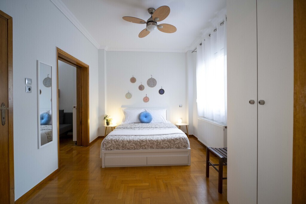 2' - 5' mins walk to: metro, buses, taxis, restaurants, coffee shops, stores, playground, Helexpo & Aristotle University campus.