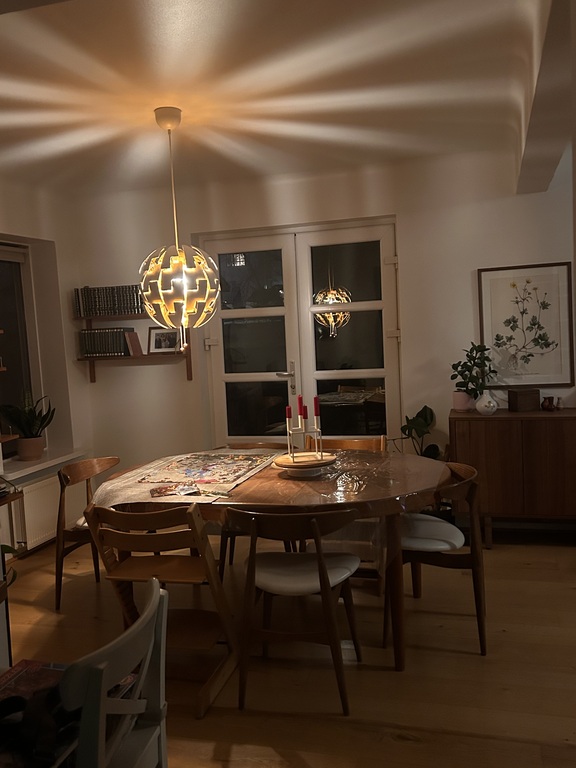 Our house is the perfect family home, the surroundings are beautiful and the neighborhood nice and quiet. The house is on three floors, basement with one bedroom with a tiny toilet and a laundry room, main floor with the kitchen, guest bathroom and living room and the second floor with the master bedroom, two adjacent kids rooms and a bathroom with a shower and a bath.