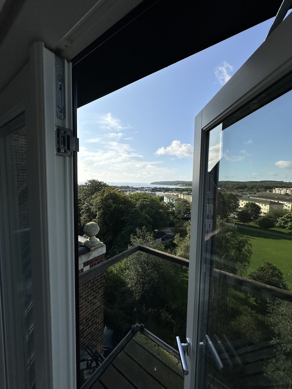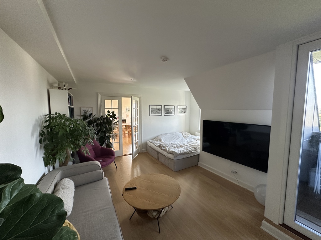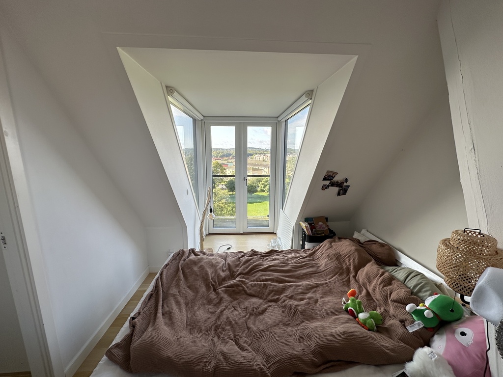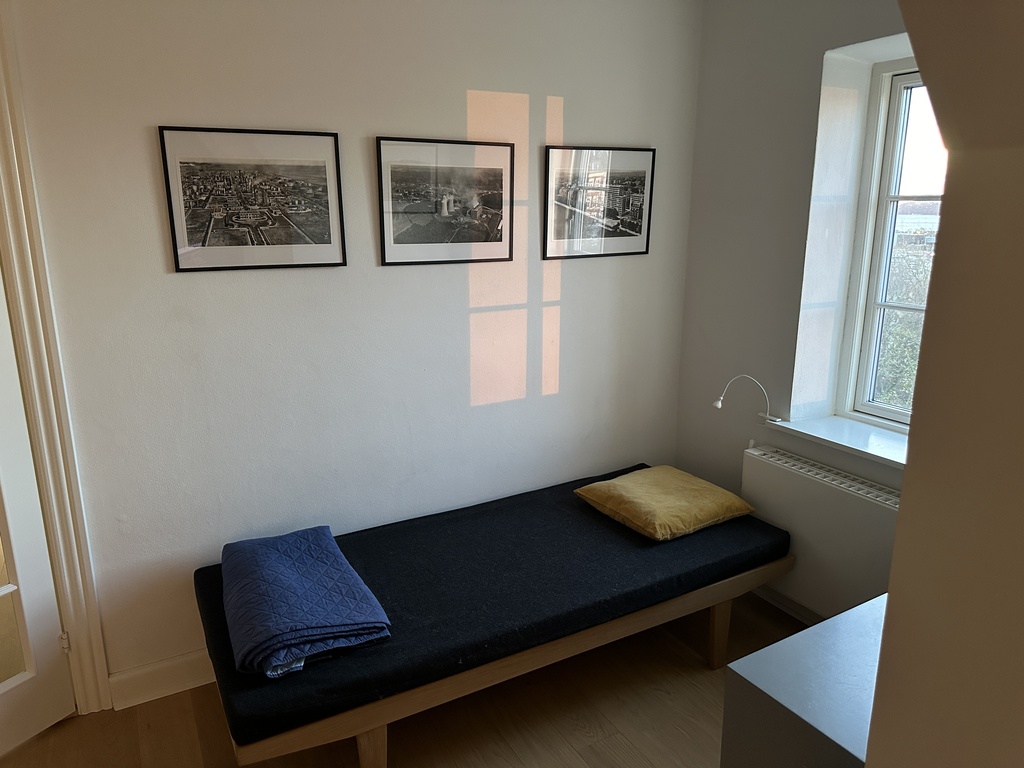 4 separate rooms with double size beds + day bed in the living room that can be used as a bed. The apartment is located in a calm street, on the 4th floor with great views of the city (to the north) and the bay of Aarhus and the forest to the south.