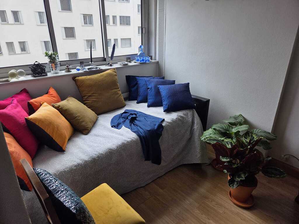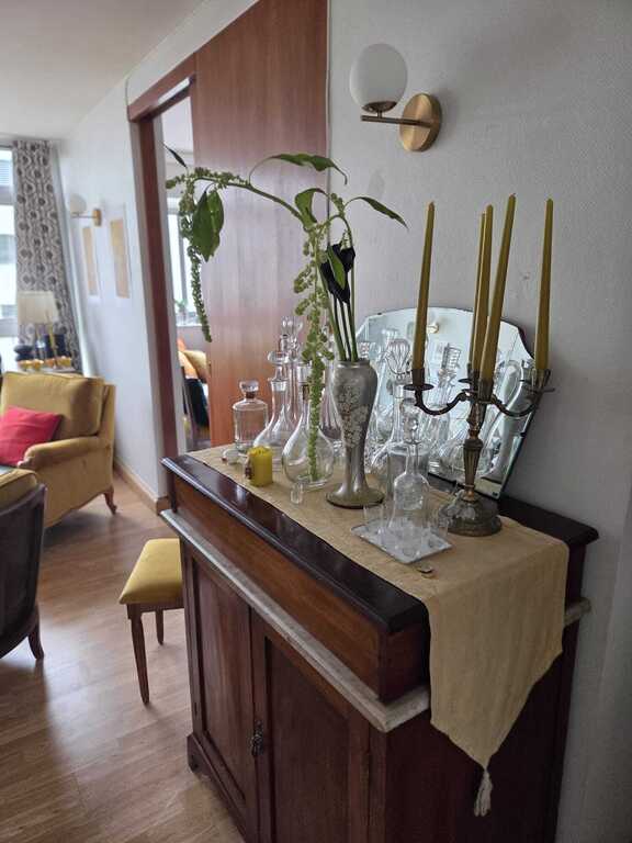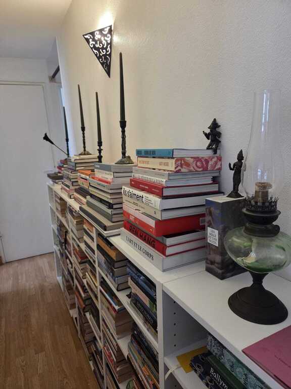 This is a 2 bedroom, comfortable apartment on the 4th floor of an 80's building (with lift) . Lots of books, antics and space.