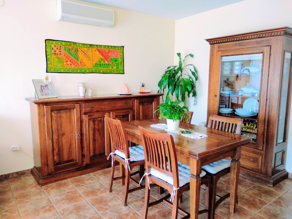 Our house consists of garage, living room with balcony, well equipped kitchen with exit to a spacious terrace where to enjoy your morning coffee or outdoor dining, room with washing machine and dryer, two baths (one with tub and the second one with shower) and three rooms.
