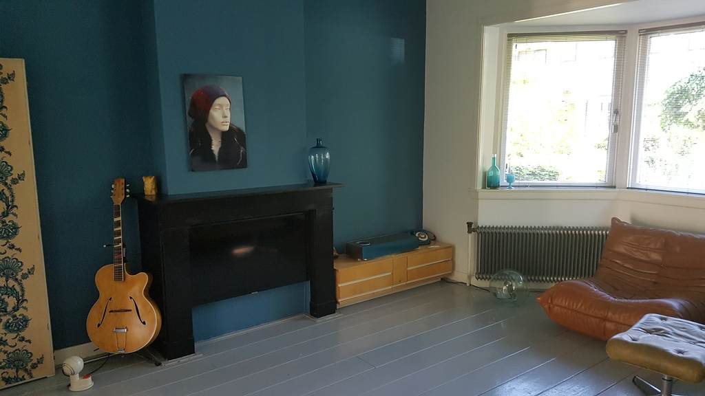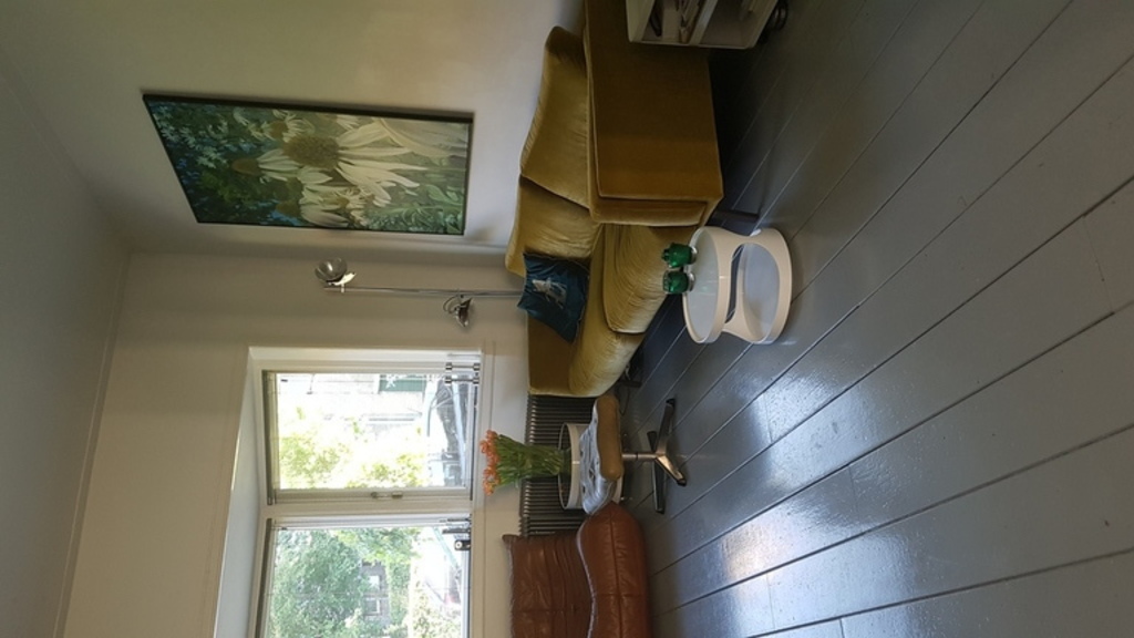 We've got a spacious sunny home with a living including a kitchen. at the front of our home is the living at street level and at the back at the first level..., with a large balcony, below the balcony we have what we call "our veranda", which is next to our garden. Besides the living there are three bedrooms and a bathroom and two smaller rooms.